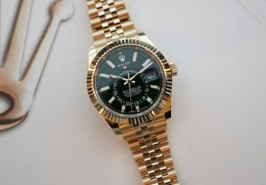 Some watches just hit differently… It’s a given that we all have our preferences in this fascinating hobby, passion and/or profession. I, for one, am not the biggest fan of Field Watches. Never have, and I doubt I ever will truly warm up to them. I’ve also never been into yellow or rose gold watches, as I prefer the cleaner, more muted look of steel or titanium (with the odd exception here or there). However, I do admit that I am warming up to precious metals and sometimes am swept off my feet entirely. One such replica watches UK are this year’s new Rolex Oyster Perpetual Sky-Dweller 336938. A heavy, and in Rolex terms, complicated watch, with a BIG visual impact!