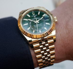 One watch that only recently came onto my radar was last year’s stainless steel & mint green Swiss fake Rolex Sky-Dweller ref. 336934 watches. The combination just clicked for me, and lured me into the collection more than any reference before it. However, this year’s ref. 336938 just blew me away with its yellow gold case, matching Jubilee bracelet and rich green sunray-brushed dial! It’s almost hard to put into words, but I am going to try anyway.